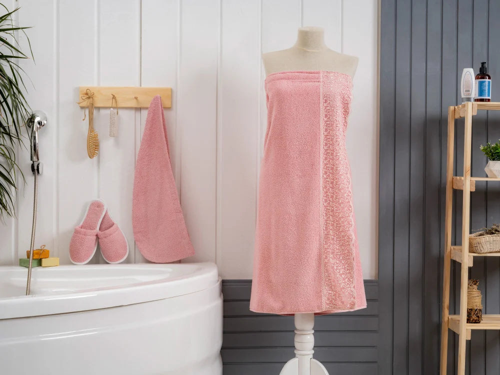 تمتعي بتجربة استحمام فاخرة مع طقم تنورة الاستحمام من نورباك، المصممة بأناقة وأنوثة من القطن التركي الناعم.
