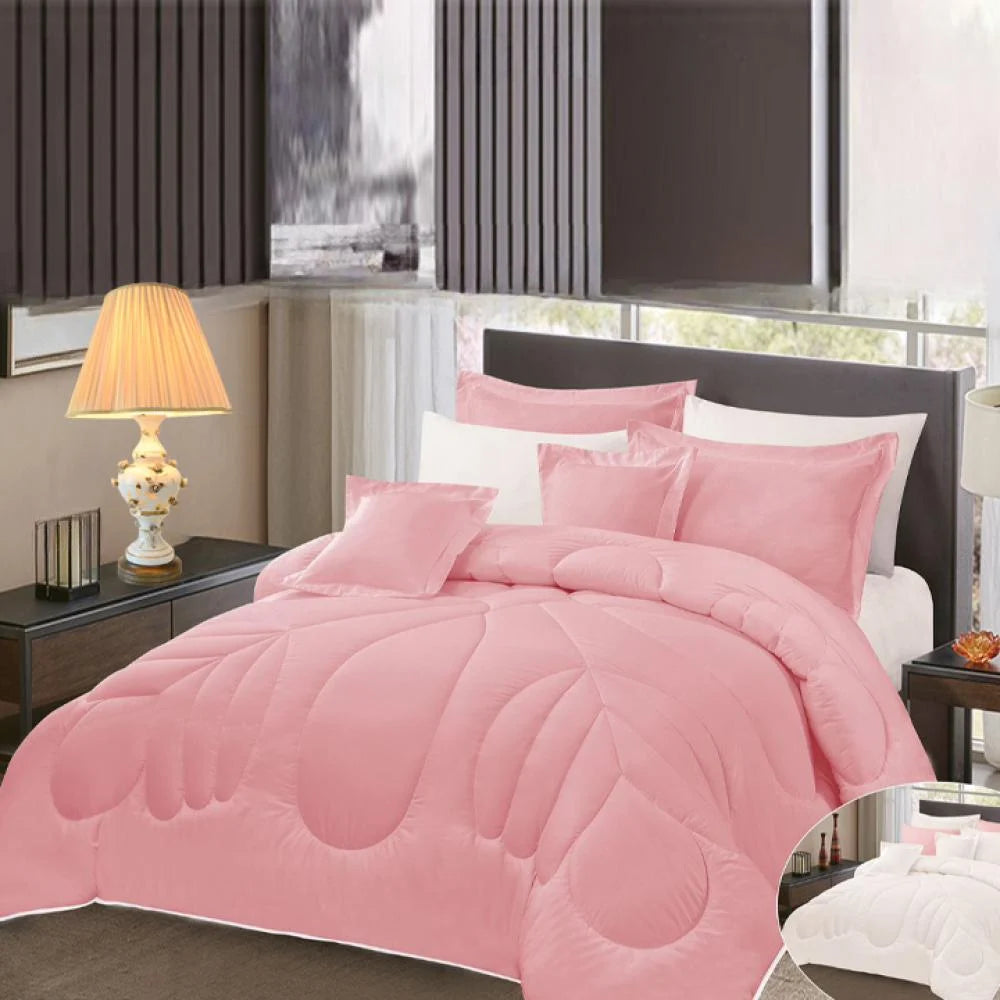 مفرش صيفي مزدوج - 8 قطع | راحة وأناقة بلمسة فاخرةاستمتع بليالي صيفية مريحة مع المفرش الصيفي المزدوج المكوّن من 8 قطع، المصنوع من مايكروفايبر فائق النعومة الذي يمنحك إحساسًا بالراحة والبرودة طوال الليل. يتميز بتصميم أنيق بوجهين، مما يتيح لك تنسيق ديكور غرفتك بأسلوب متجدد.