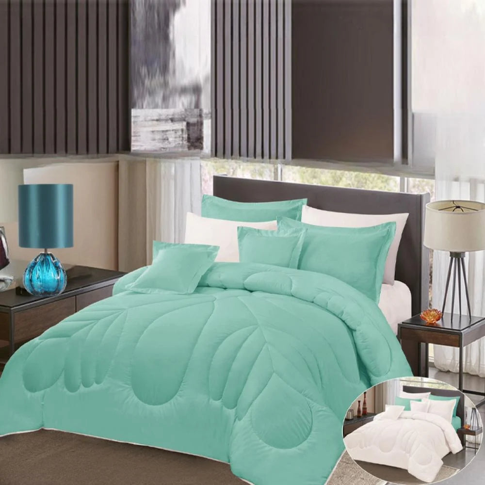 مفرش صيفي مزدوج - 8 قطع | راحة وأناقة بلمسة فاخرةاستمتع بليالي صيفية مريحة مع المفرش الصيفي المزدوج المكوّن من 8 قطع، المصنوع من مايكروفايبر فائق النعومة الذي يمنحك إحساسًا بالراحة والبرودة طوال الليل. يتميز بتصميم أنيق بوجهين، مما يتيح لك تنسيق ديكور غرفتك بأسلوب متجدد.