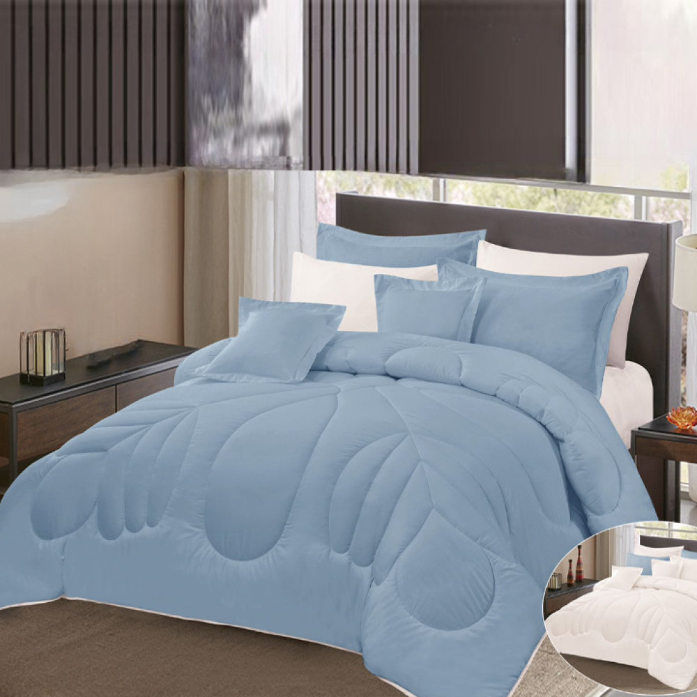 مفرش صيفي مزدوج - 8 قطع | راحة وأناقة بلمسة فاخرةاستمتع بليالي صيفية مريحة مع المفرش الصيفي المزدوج المكوّن من 8 قطع، المصنوع من مايكروفايبر فائق النعومة الذي يمنحك إحساسًا بالراحة والبرودة طوال الليل. يتميز بتصميم أنيق بوجهين، مما يتيح لك تنسيق ديكور غرفتك بأسلوب متجدد.