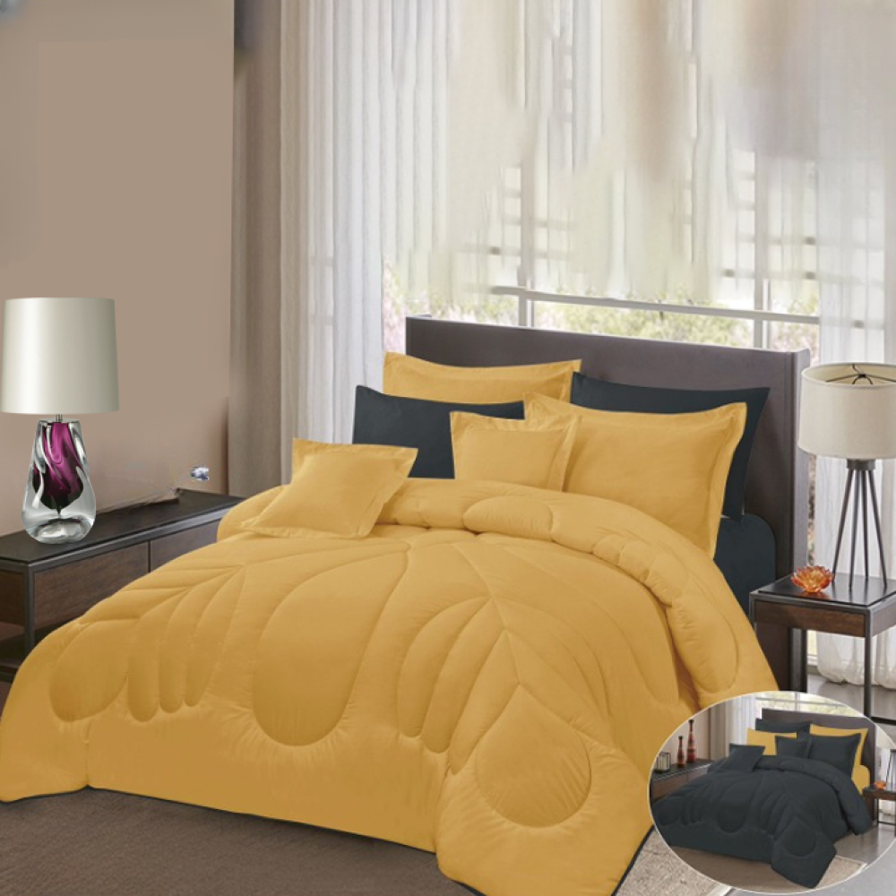 مفرش صيفي مزدوج - 8 قطع | راحة وأناقة بلمسة فاخرةاستمتع بليالي صيفية مريحة مع المفرش الصيفي المزدوج المكوّن من 8 قطع، المصنوع من مايكروفايبر فائق النعومة الذي يمنحك إحساسًا بالراحة والبرودة طوال الليل. يتميز بتصميم أنيق بوجهين، مما يتيح لك تنسيق ديكور غرفتك بأسلوب متجدد.