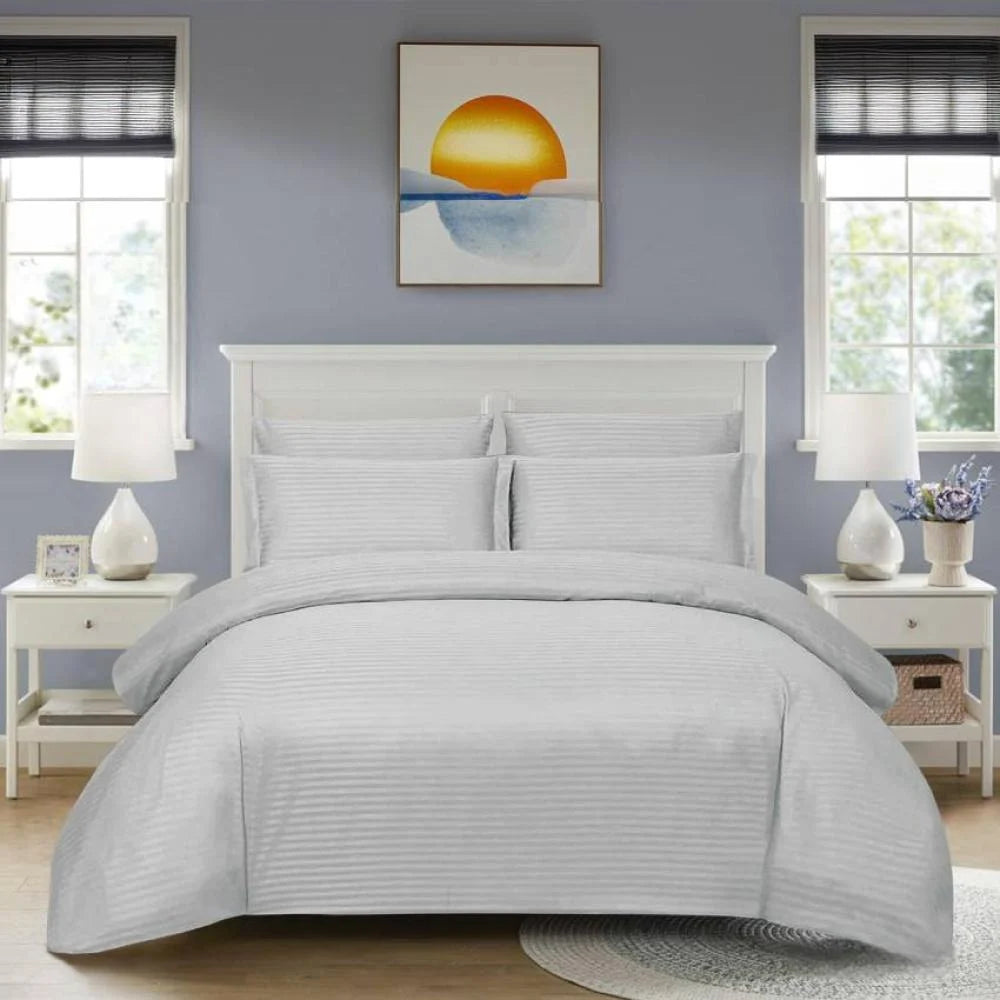 أضف لمسة من الرقي والراحة إلى غرفة نومك مع مفرش فندقي دالما المفرد ونص المكون من 5 قطع، المصمم بجودة عالية ليضمن لك نومًا هنيئًا.