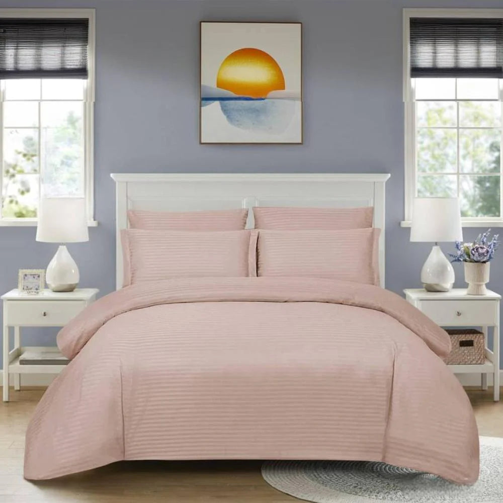 أضف لمسة من الرقي والراحة إلى غرفة نومك مع مفرش فندقي دالما المفرد ونص المكون من 5 قطع، المصمم بجودة عالية ليضمن لك نومًا هنيئًا.